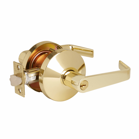 - Description: B Series Entry/Office, Dane Lever, 2-3/4" Square Corner Backset with 4-7/8" ANSI Strike, G Keyway. 605 Bright Brass