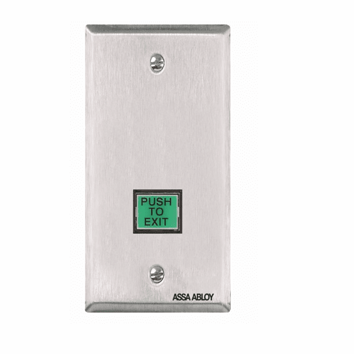 SECURITRON PB3 Series Pushbutton- Description: PB3E Model - Non-Illuminated, Momentary Switch, Single Gang, Green/Red Lens