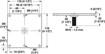 - Square mounting plate with M10 bolt