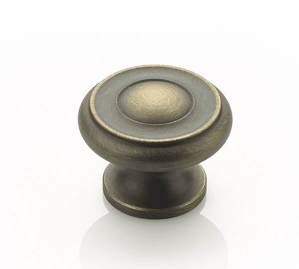 Traditional, Stepped Round Knob, Antique Light Brass, 1-1/2" dia, Schaub 704-ALB